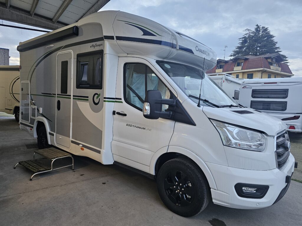 Chausson 650 Titanium Line – anno 2026, camper nuovo, ideale per coppia o famiglia grazie agli spazi ben distribuiti e alle dotazioni di alto livello. Dimensioni compatte (meno di 7 metri) ma con grande abitabilità interna, bagno ampio e grande armadio sopra il garage.
